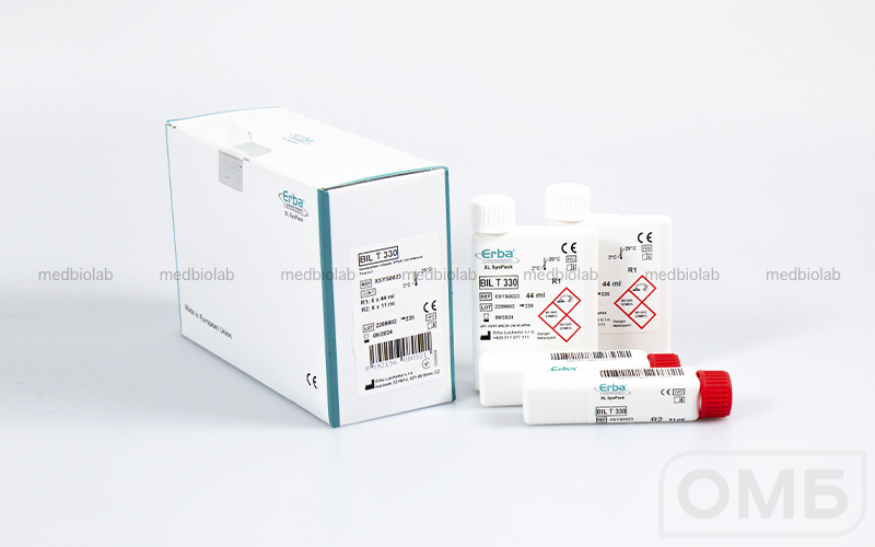 Набор для определения общего билирубина диазометодом Инновационный набор реагентов для точного и надежного измерения уровня общего билирубина в сыворотке крови. Разработан с использованием современного диазометода, который обеспечивает высокую чувствительность и точность результатов. Набор идеально подходит для использования в клинико-диагностических лабораториях и совместим с анализаторами ERBA XL. Фасовка: Реагент 1 не менее 6х44 мл, Реагент 2 не менее 6х11 мл. Состав реагентов: Реагент 1 HCl не менее 58,8 ммоль/л, Сульфаниловая кислота не менее 28.87 ммоль/л, Цетримония бромид не менее 68.6 ммоль/л. Реагент 2 Нитрит натрия не менее 2,90 ммоль/л. Линейность: не менее 23 мг /дл (389,85 мкмоль/л). Чувствительность: не более 0,08 мг/дл (1,36 мкмоль/л). Диапазон измерения: не менее 0,08 – 23 мг/дл (1,36 – 389,85 мкмоль/л)Особенности:Упаковка реагентов оснащена штрих-кодами для удобства автоматического распознавания на анализаторах ERBA XL.Реагенты поставляются в емкостях, оптимизированных для использования на современных биохимических анализаторах.Диазометод обеспечивает высокую точность и стабильность измерений.Преимущества:Высокая точность и воспроизводимость результатов.Удобная фасовка и упаковка, минимизирующая потери реагентов.Совместимость с широким спектром автоматических анализаторов.