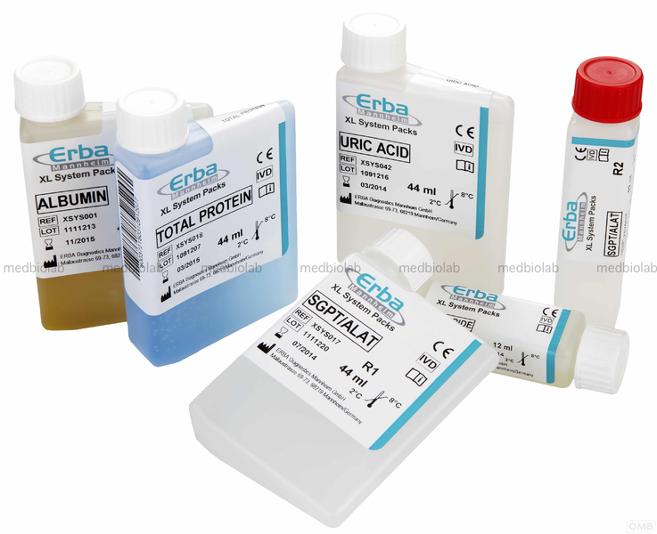 Набор для количественного определения глюкозы (гексокиназный метод) Инновационный набор реагентов для точного и надежного измерения уровня глюкозы в сыворотке крови, плазме и моче. Набор основан на гексокиназном методе, который признан "золотым стандартом" благодаря своей высокой специфичности и точности. Идеально подходит для использования в клинико-диагностических лабораториях и совместим с автоматическими анализаторами ERBA XL.Фасовка: Реагент 1 не менее 6х44 мл. Реагент 2 не менее 6x11 мл. Состав реагентов: Реагент 1 Трис буфер, pH 7.40 не менее 100 ммоль/л, АТФ не менее 2.5 ммоль/л, НАДH + не менее 2.5 ммоль/л. Реагент 2 MgCl2 не менее 25 ммоль/л , Гексокиназа не менее 10 Ед/л, Г-6-ПДH не менее 10 Ед/л. Линейность: не менее 800 (мг/дл) (45 ммоль/л), Чувствительность: не более 2 (мг/дл.) (0,11 ммоль/л). Особенности:Упаковка реагентов оснащена штрих-кодами для удобства автоматического распознавания на анализаторах ERBA XL.Реагенты поставляются в емкостях, оптимизированных для использования на современных биохимических анализаторах.Гексокиназный метод обеспечивает высочайшую точность и специфичность измерений.Преимущества:Высокая точность и воспроизводимость результатов.Удобная фасовка и упаковка, минимизирующая потери реагентов.Совместимость с широким спектром автоматических анализаторов.