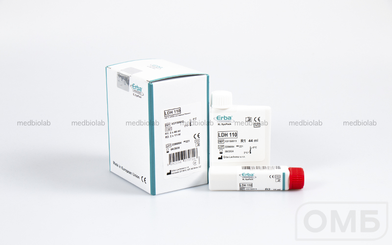 Набор для определения лактатдегидрогеназы (ЛДГ) – DGKCH метод (кинетический) Инновационное решение для точного и быстрого измерения активности лактатдегидрогеназы в сыворотке крови. Набор основан на кинетическом DGKCH методе, который обеспечивает высокую точность, стабильность и воспроизводимость результатов. Идеально подходит для диагностики и мониторинга широкого спектра заболеваний, включая поражения сердца, печени и скелетных мышц.Фасовка: Реагент 1 не менее 2х44 мл, Реагент 2 не менее 2х11 мл. Состав реагентов: Реагент 1 Фосфатный буфер (pH - 7.5) не менее 100 ммоль/л, Пируват не менее 2 ммоль/л. Реагент 2 НАДН не менее 1.66 ммоль/л. Линейность: не менее 1200 Е/л (20,4 мккат/л) Чувствительность: не более 43.8 Е/л (0,746 мккат/л). Диапазон измерения: не менее 43,8 – 1200 Е/л (0,746 – 20,4 мккат/л) Особенности:Упаковка реагентов оснащена штрих-кодами для удобства автоматического распознавания на анализаторах ERBA XL.Совместимость с современными биохимическими анализаторами, что упрощает интеграцию в лабораторные процессы.Оптимизированный состав реагентов обеспечивает стабильность и длительный срок хранения.Преимущества:Высокая точность и воспроизводимость результатов, соответствующих международным стандартам.Удобство использования благодаря автоматизированной системе распознавания и обработки.Широкий диапазон измерений, подходящий для различных клинических задач.