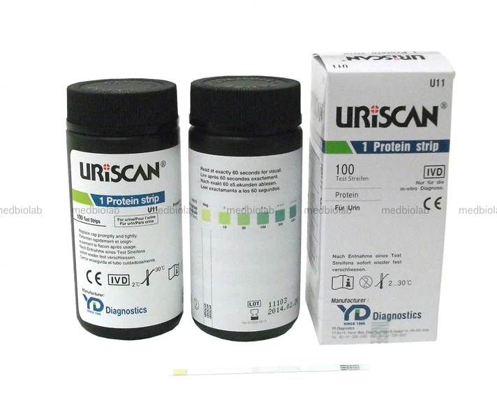 Тест-полоски URISCAN 1 Protein предназначены для качественного и полуколичественного определения уровня белка в моче. Выявление белка и оценка протеинурии имеют важное значение в диагностике различных заболеваний, как первичных, так и вторичных, связанных с почками. Мониторинг изменений в протеинурии позволяет оценить не только текущее состояние почек и мочевыводящих путей, но и эффективность назначения лечения, а также динамику патологического процесса. Высокая чувствительность теста (минимально определяемая концентрация) по определяемому аналиту: белок - 10 мг/дл альбумина. Тест-полоски URISCAN 1 Protein обеспечивают удобный и быстрый способ контроля за состоянием здоровья, способствуя раннему выявлению возможных нарушений. Упаковка: 100 шт/упак.